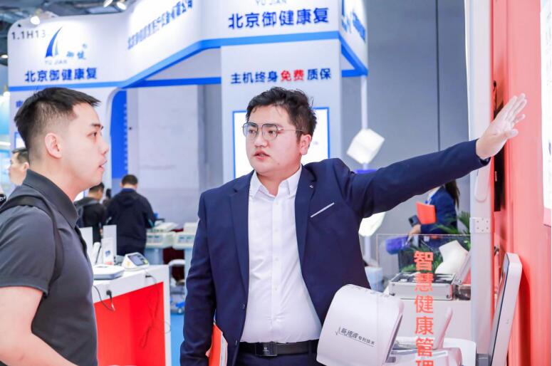 展会现场,公司精心打造的科技感十足的展示区,吸引了无数参展者驻足停留。此次展出的产品包括制氧机、血压计、各类新中医理疗产品以及健康一体机等,无一不展现出公司在技术创新与产品研发上的深厚积淀与卓越实力。