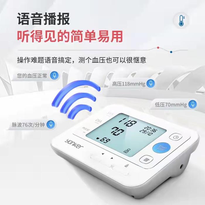 六玄网132432医疗的臂式血压计无需复杂设置,测血压只需一步。为了减少父母测血压时操作设备的不便,我们将产品设计成大屏大字体显示,健康数据一目了然。有的产品还有语音播报血压数据的功能,测量血压过高时还会发出警报,对于中老年使用者非常友好。